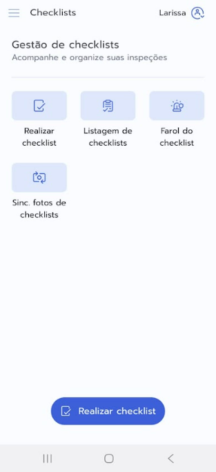 4. No menu do checklist, selecionar a opção Realizar Checklist.