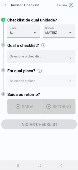 6. Preencher os dados solicitados para iniciar a realização do checklist.