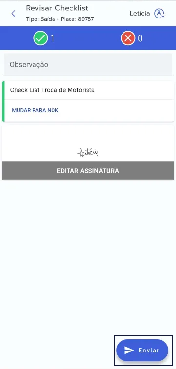 10. Realizada a verificação de todos os itens, o sistema apresentará um resumo do checklist para revisão.