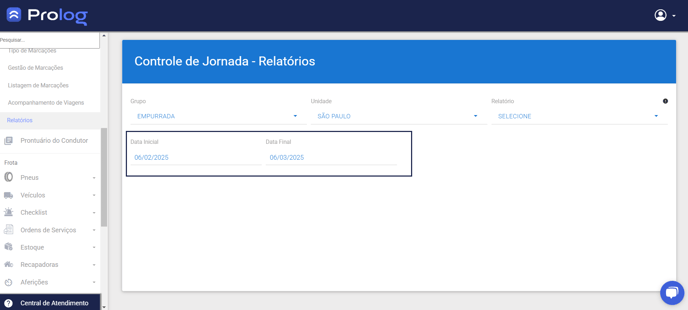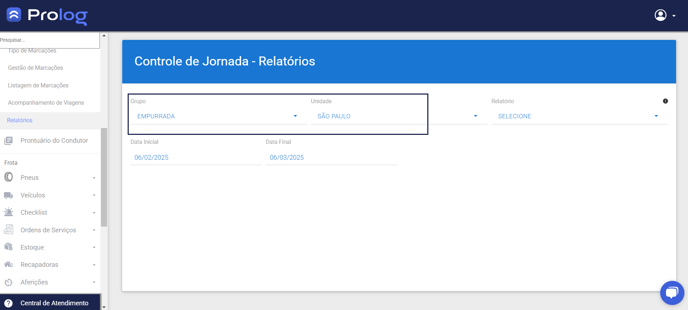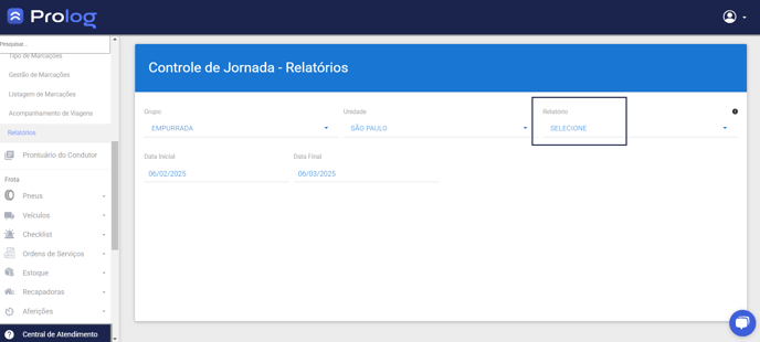 1 - Na aba de opções, selecionar Controle de jornada > Relatórios 📈