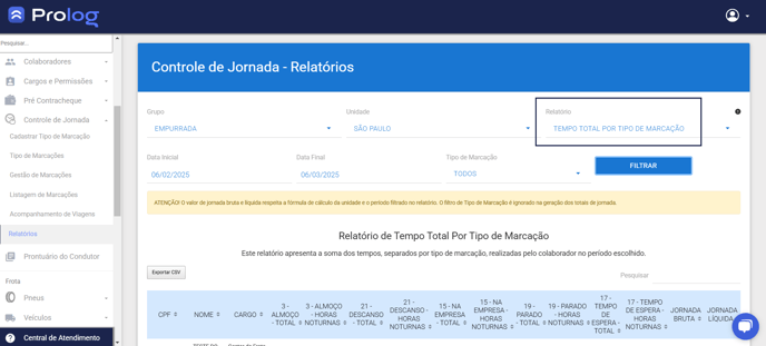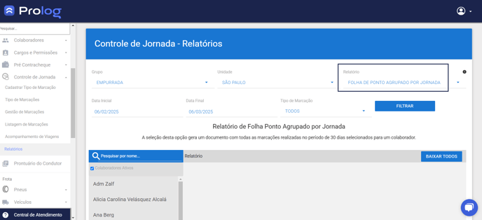 Atenção! A disponibilização deste relatório apenas é dada para colaboradores que realizaram marcações do tipo Jornada.
