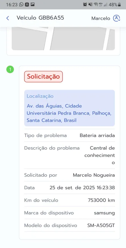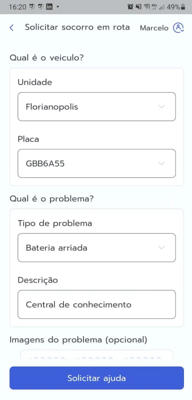 3 - Informe a unidade, placa, problema, descrição, foto (opcional) e ponto de referência.