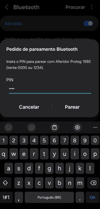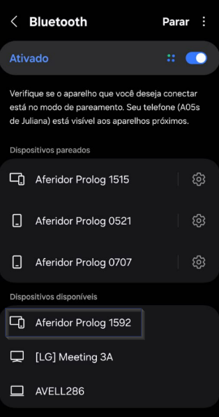 Com o aferidor já conectado via Bluetooth, abra o app Prolog.