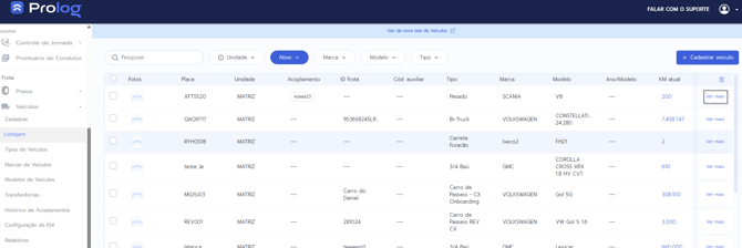 1. No menu do prolog web, escolha a opção Veículos > Listagem.